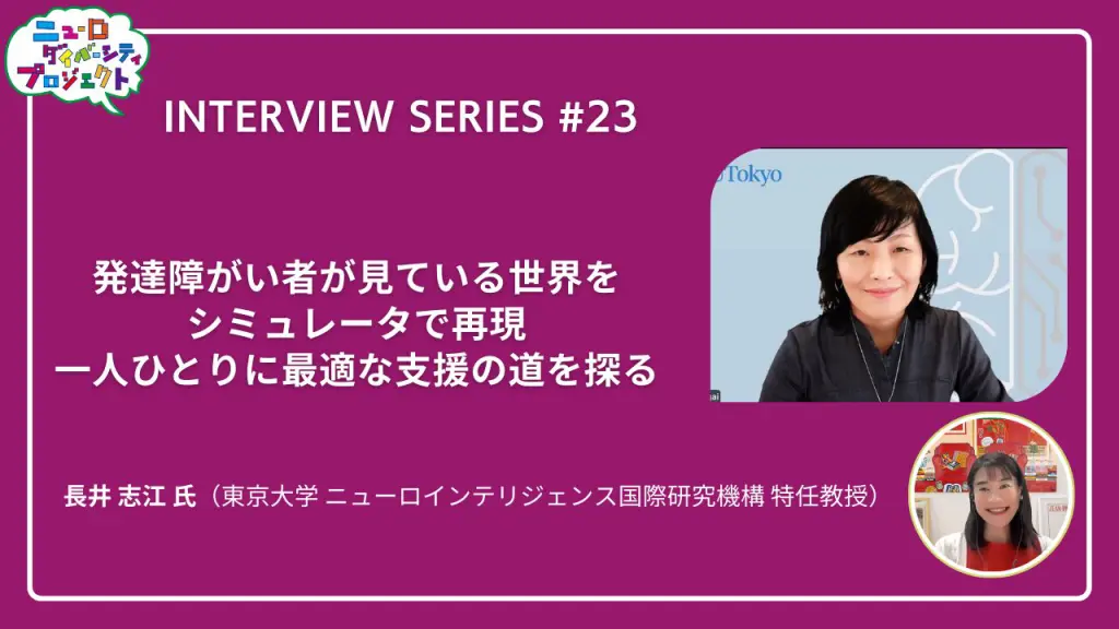 ニューロダイバーシティプロジェクトによる長井志江特任教授のインタビュー記事が,プロジェクトのウェブサイトに公開されました.当研究室が開発を進めるASD知覚体験シミュレータと多感覚情動推定システムについて,開発の経緯やその科学的・社会的意義を紹介しています.